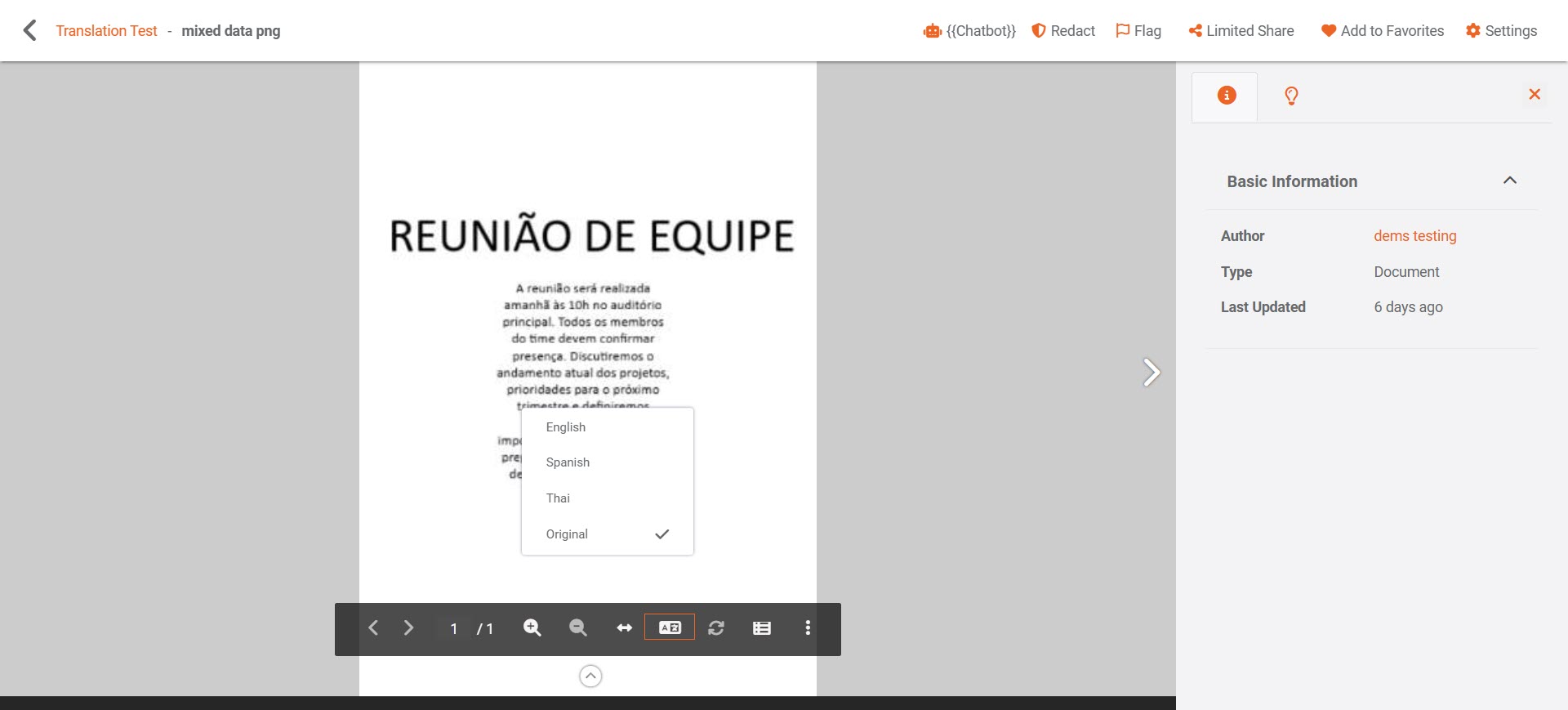 VIDIZMO Indexer supports multilingual translation for both documents and images. This allows users to automatically translate text and visual content into multiple global languages, enhancing accessibility and understanding across regions.