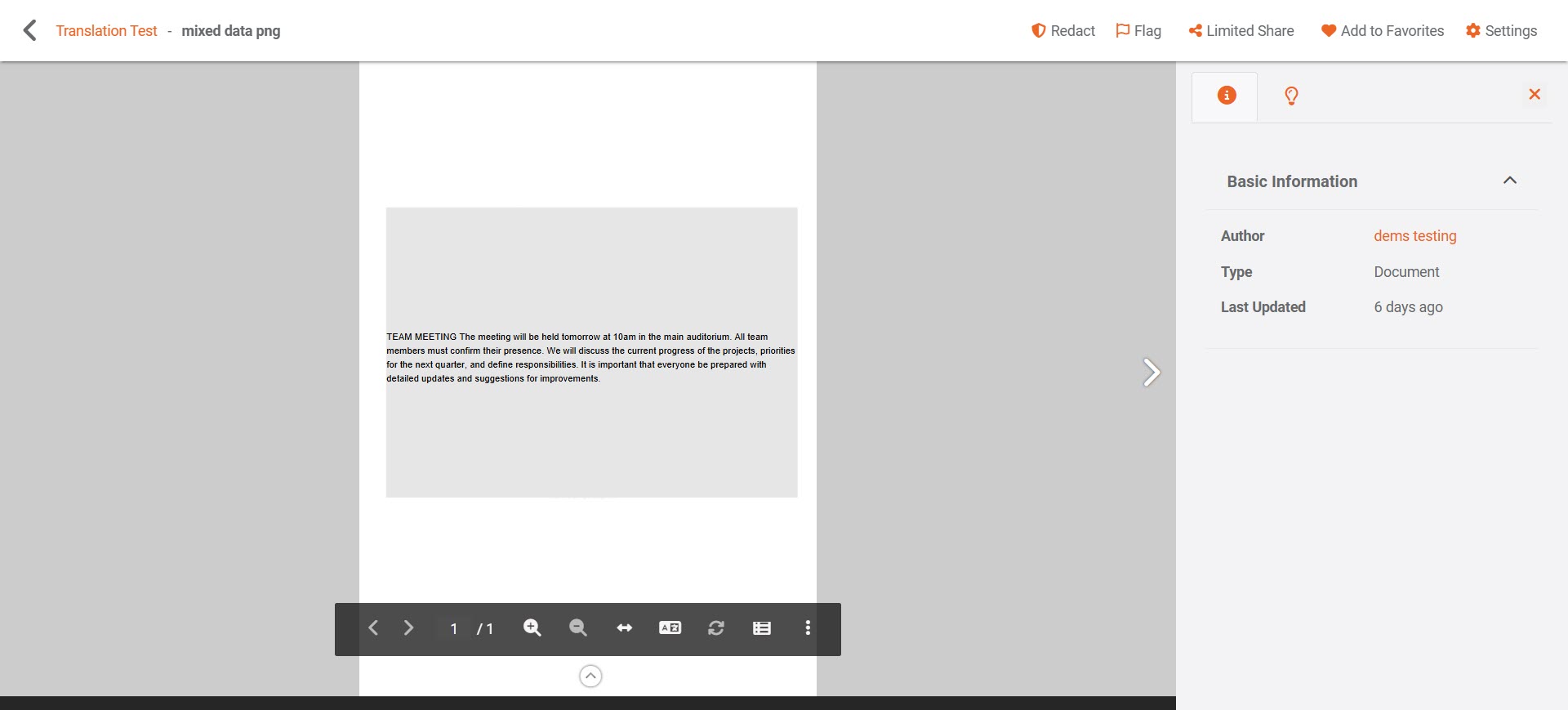 VIDIZMO lets you translate the text present in your documents or on the images. When Document Translation or Image Translation is enabled in the VIDIZMO Indexer’s Insights, supported documents and images are automatically translated using standard processing modes:
