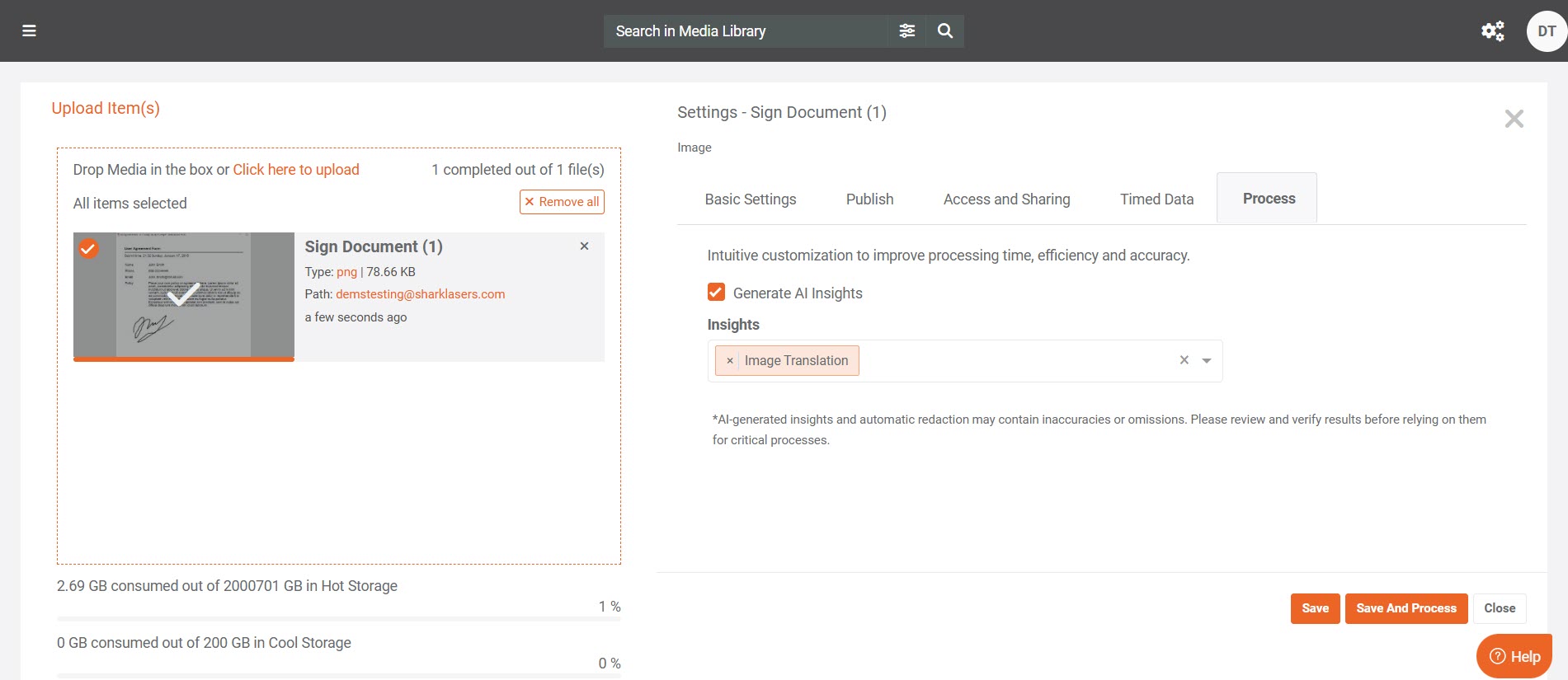 NOTE: Translation activities consume AI processing resources. Each translation counts toward your organization’s total AI processing usage and may affect your available quota or billing.