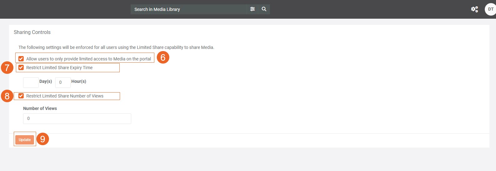 - In Number of Views, enter the maximum number of times the shared media can be accessed.