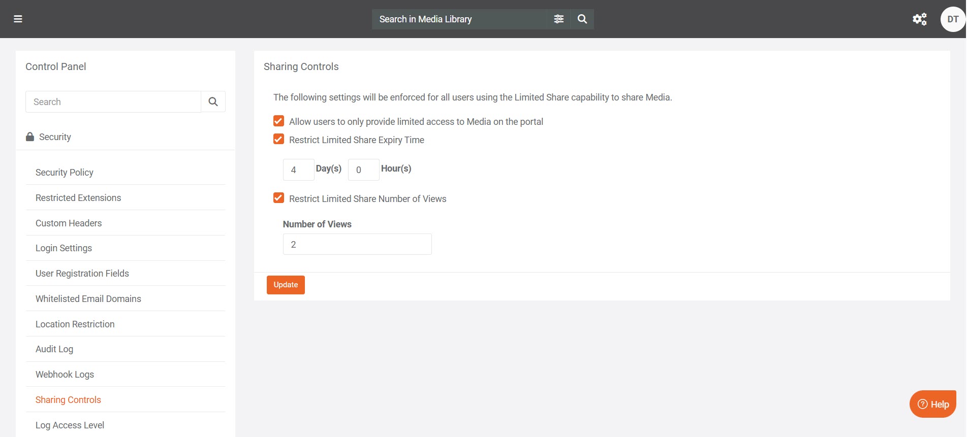 Security Policy in a Portal enables users to define governance controls that determine who can access your Portal and view media published in the Library of your Portal.