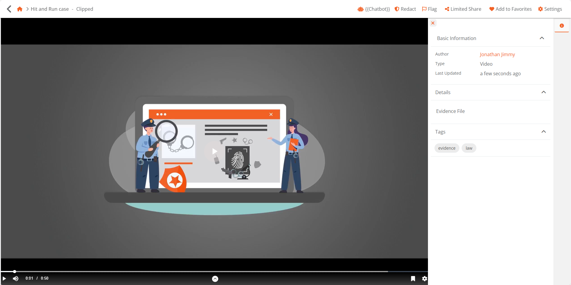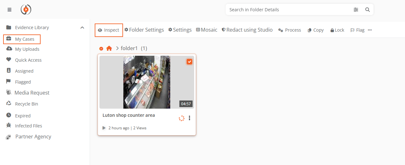 In VIDIZMO DEM, cases are enclosed within folders containing evidence such as documents, images, videos, and recordings. Cases can be inspected for further investigation, with options to zoom in/out, annotate, and rotate images.