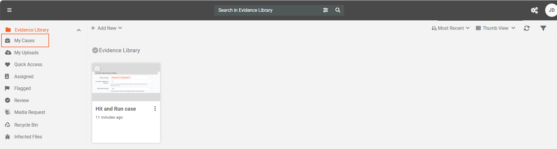 - Click on My Cases folder.Your cases will be shown on the right side of the window.