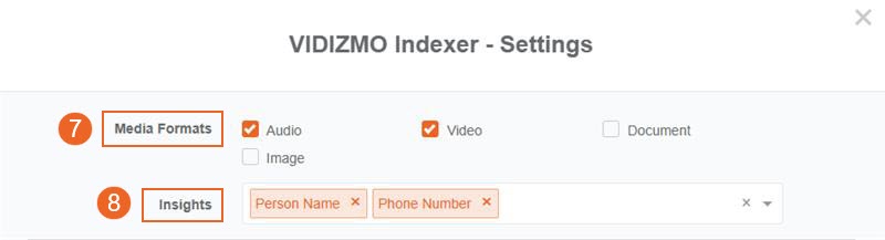 - Use the settings icon to open the VIDIZMO Indexer's settings.
