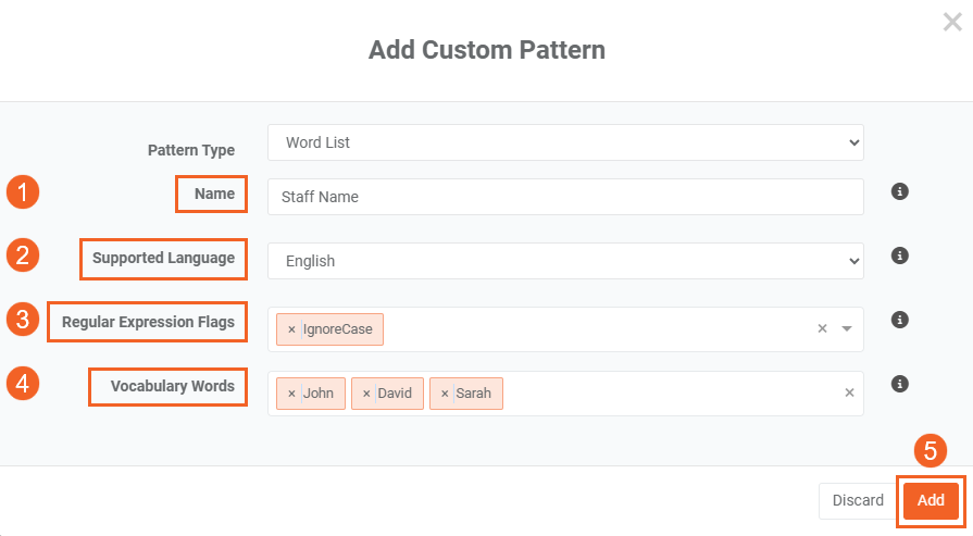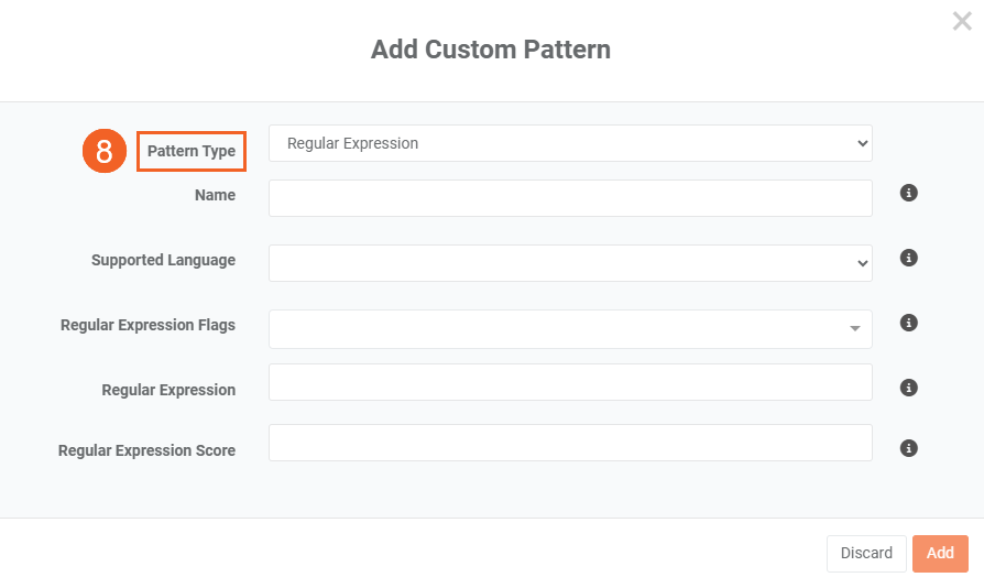 - In the Add Custom Pattern window, choose a Pattern Type:
