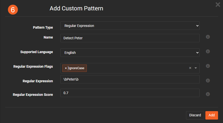 Note: You can’t create a custom pattern with the same name as an existing predefined PII entity. Use a distinct, descriptive name