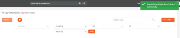 A notification will be displayed briefly stating: Selected users have been enabled successfully.