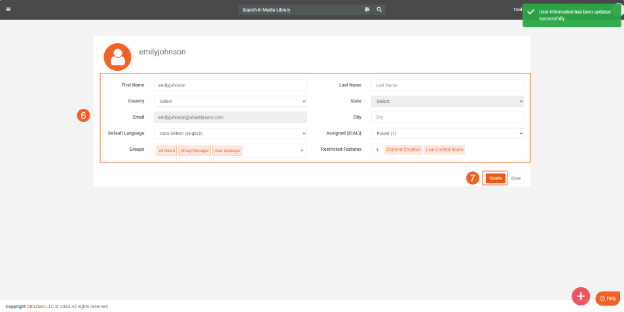 6. You'll be directed to the User Profile screen where you can update user’s information.