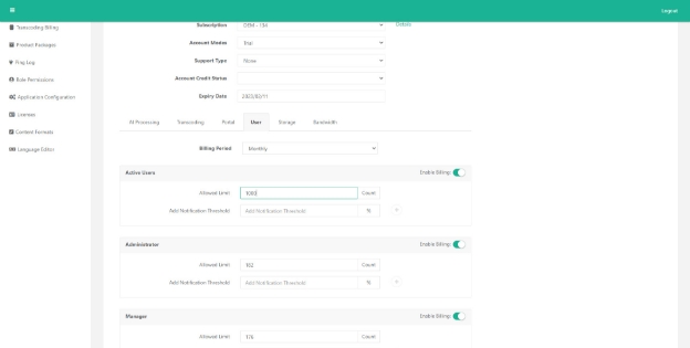 VIDIZMO licenses its products based on the number of users. Depending on the package, a number of additional users in particualr role may be allowed into the system depending on the license but if the number of users exceeds the system prompt the the user when they are about the exceed the license limit.